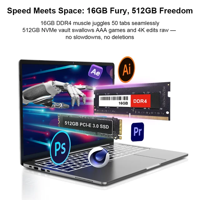 16GB DDR4 RAM | 512GB PCIe 3.0 SSD | Seamless Multitasking & Large File Storage